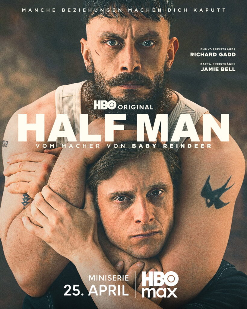 Half Man Credits: „Half Man“ wurde von Richard Gadd entwickelt, geschrieben und als Executive Producer betreut. Sophie Gardiner und Anna O’Malley fungieren ebenfalls als Executive Producer, ebenso wie Gaynor Holmes für die BBC und Gavin Smith für BBC Scotland. Die Regie übernehmen Alexandra Brodski und Eshref Reybrouck. Als Executive Producer für Mam Tor Productions zeichnen Tally Garner und Morven Reid verantwortlich. Produziert wird die Serie von Mam Tor Productions (einem Unternehmen der Banijay UK) in Zusammenarbeit mit Thistledown Pictures – für BBC iPlayer, BBC One, BBC Scotland und HBO. Banijay Rights übernimmt den internationalen Vertrieb außerhalb der BBC- und HBO-Rechte. Unterstützt wird HALF MAN von Screen Scotland.